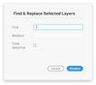 Findに検索文字列、Replaceに置換文字列を入力する。それにより選択中のレイヤーから文字列がマッチしていれば、一括で置換が完了する。テキストエディタの文字列置換と変わらない感覚だろう。