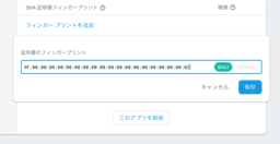 先ほど確認したSHA1を入力し、「保存」をクリックします