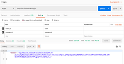 サーバを起動しPostmanからログインAPIを叩いてみますが・・・。