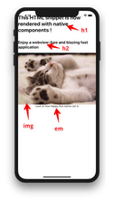 <h1>This HTML snippet is now rendered with native components !</h1>